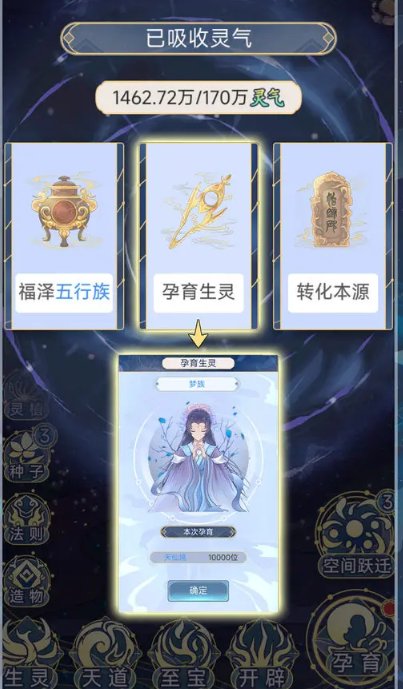 游戏中生物的诞生,就有机会在游戏中繁衍和培养多种生物种族。每个种族都有独特的特征和特殊能力。玩家作为天道的创造者,可以带领自己的天
