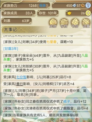 当市场更新时,尽可能多地购买。学校、武术中心、保健中心尽可能多地邀请高手。祠堂视情况而定,以点武歌、文歌、祈财为主。据一项数据显示