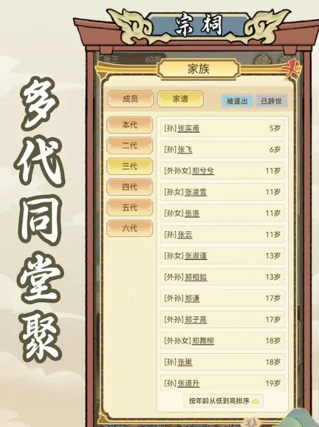 开放政策是培育后代奖励3元宝。第一代多挖药材,多选择武功,增加体质,子孙成年后就去相亲。武术加体质>200优先,全员习武参军。体质药物