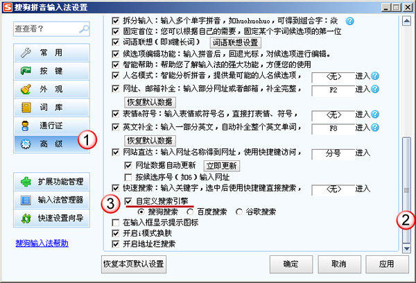 搜狗输入法如何快速设置搜索使用的搜索引擎