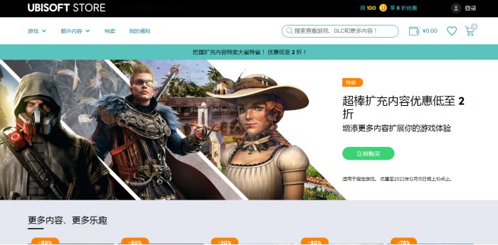 打开电脑浏览器,在里面输入“Ubisoft”找到官网并进入,滚动到页面底部找到下载的‘Ubisoft Connect’,点击进入页面,点击图标处的“
