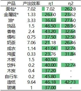 2 不适用于某些产品,因为木材无法大量生产。这里的面包、金属锭、石油的数据是订购相应先进技术后的数据。注意,2表示整个过程是自己生成的,1表示所有购买都是进行的。