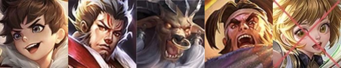 中报组,我们的位置比较接近,所以建议禁止貂蝉;王昭君和甄姬的控制效果比较难受,而且王昭君的攻速降低对马超来说也很痛苦,所以建议禁用。