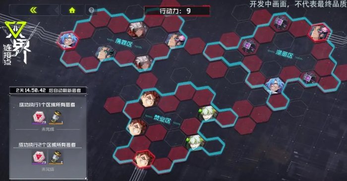 实地考察每周都会对他们构成挑战。有些是为了稀有道具,有些只是为了战斗或练习。这种行为称为——执行。地图分为三个区域,每个区域有五个点,初始行动力为9点,目标是在地图上获得尽可能多的奖励。