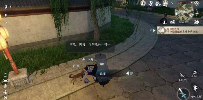 1、前往杭州1307.944与NPC“小海”对话并提交“包子”并领取包
