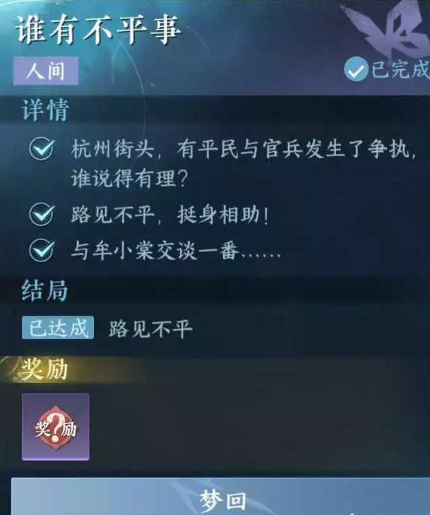 以上就是《奶水寒手游》人类任务谁有不义任务攻略的全部内容。更多逆水寒手游相关攻略,点击逆水寒手游专区查看!
