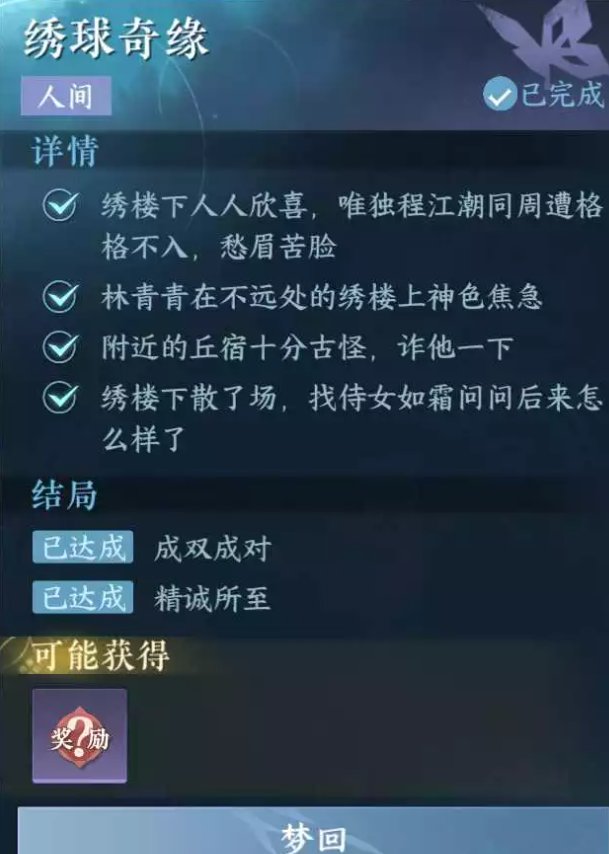以上就是《逆水寒手游》人类任务绣球奇缘任务攻略的全部内容,更多逆水寒手游相关攻略,点击逆水寒手游专区查看!
