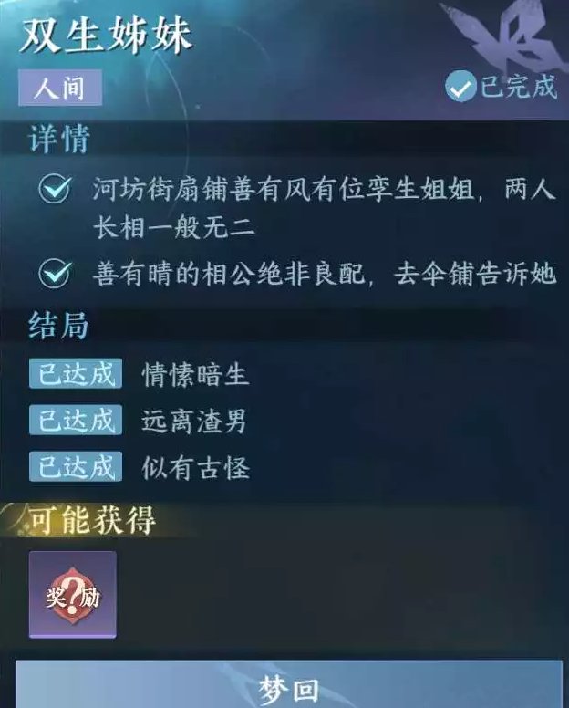 《乃水寒手游》人类任务双胞胎姐妹任务攻略