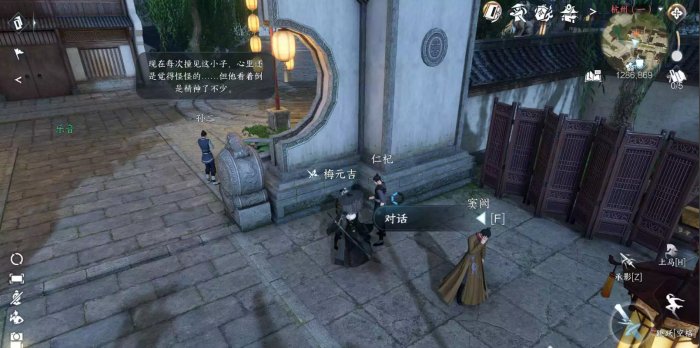 1. 晚上!前往杭州1086.1006与NPC“梅元吉”对话