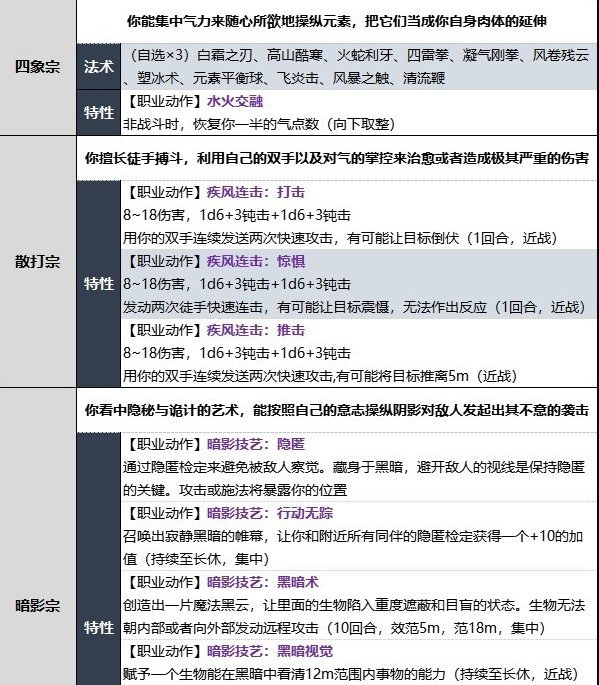 【专业特色】 额外攻击:发动徒手或武器攻击后,可以进行一次额外的自由攻击。来自多个类别的多次攻击不会叠加