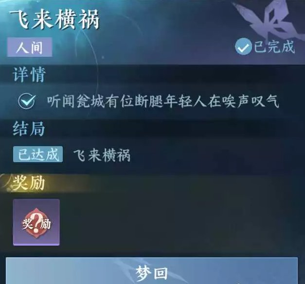 1030.1312与汴京NPC“齐江流”对话即可完成任务。任务奖励3个剧情点、2个风云翎、2个缚玉。
