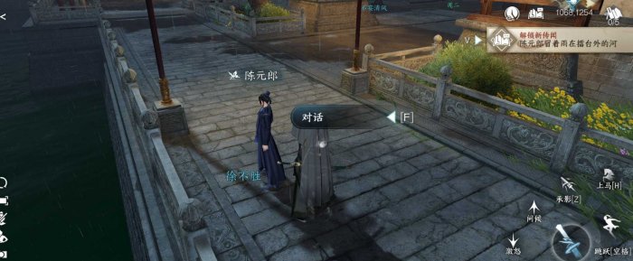 1、下雨天!前往汴京1068.1254与NPC“陈元朗”对话