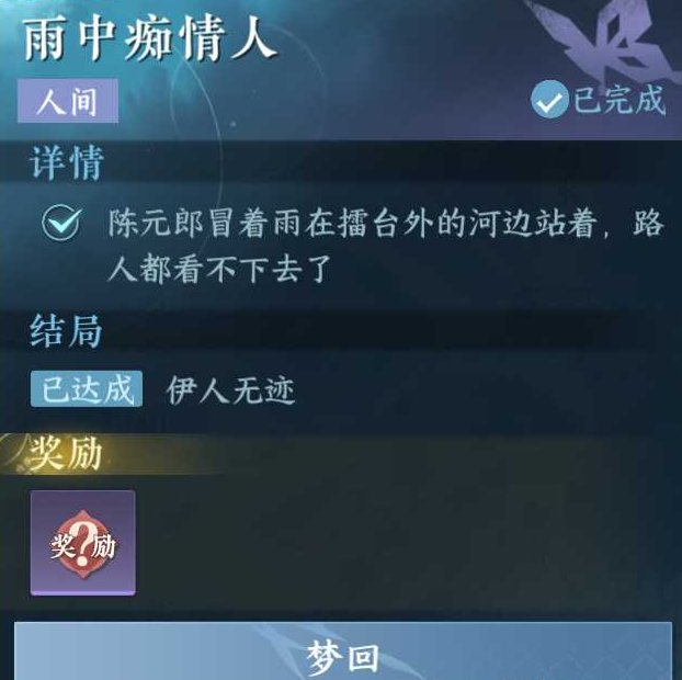 以上就是《逆水寒手游》任务攻略全部内容,痴情雨汉的任务,更多逆水寒手游相关攻略,点击逆水寒手游专区查看!