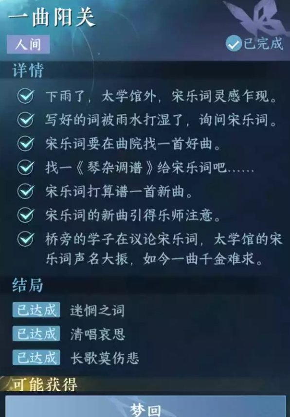 《乃水寒手游》人类任务一曲阳关任务攻略