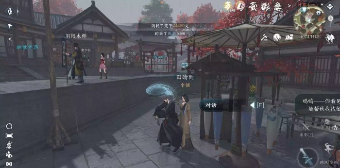 3、检查背包里是否有“雨伞”。如果没有,就去汴京1074.1112买把伞。