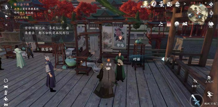 1.前往汴京927.1039,绕过NPC“花落”触发冒险,与其对话接受任务