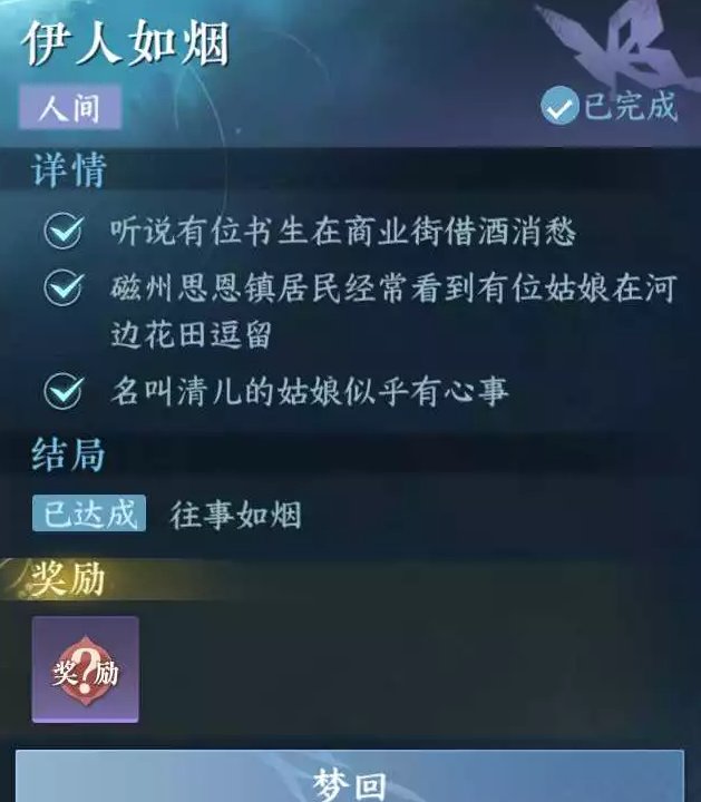 以上就是《逆水寒手游》中人类使命伊人如烟的攻略全部内容。更多逆水寒手游相关攻略,点击逆水寒手游专区查看!