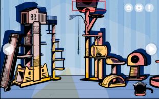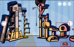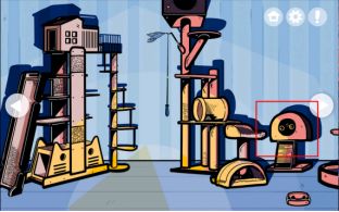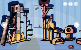 9、猫爬架上的存储卡非常醒目。这里如果点击存储卡,会提示距离太远,无法到达。使用猫棒点击存储卡,猫就会出现来帮助我们。